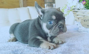 Il bulldog francese blu è un meticcio, non è riconosciuto dalla FCI e non potrà mai avere un pedigree ufficiale (se non falso).I bulldog francesi blu, grigio, merle, lilac, nero focato con occhi di colore azzurro NON ESISTONO!